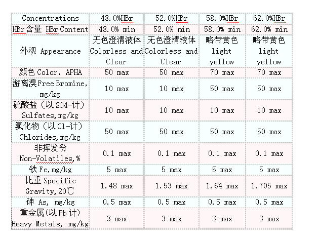 产品介绍:高纯氢溴酸是一种强性水溶酸,是制造各种无机溴化物(如NaBr, KBr, LiBr及Ca2Br等),某些烷基溴化物和其他溴化物和其他有机产品的基本原料。在医药上,用以合成镇静剂,麻醉剂等医药用品;在工业上,氢溴酸可用于某金属矿物的萃取剂,脂环烃或链烃氧化为铜,酸或过氧化物的催化剂,精对苯二甲酸,(PTA)和PET聚酯的催化剂。此外,氢溴酸还可用于合成燃料和香料。